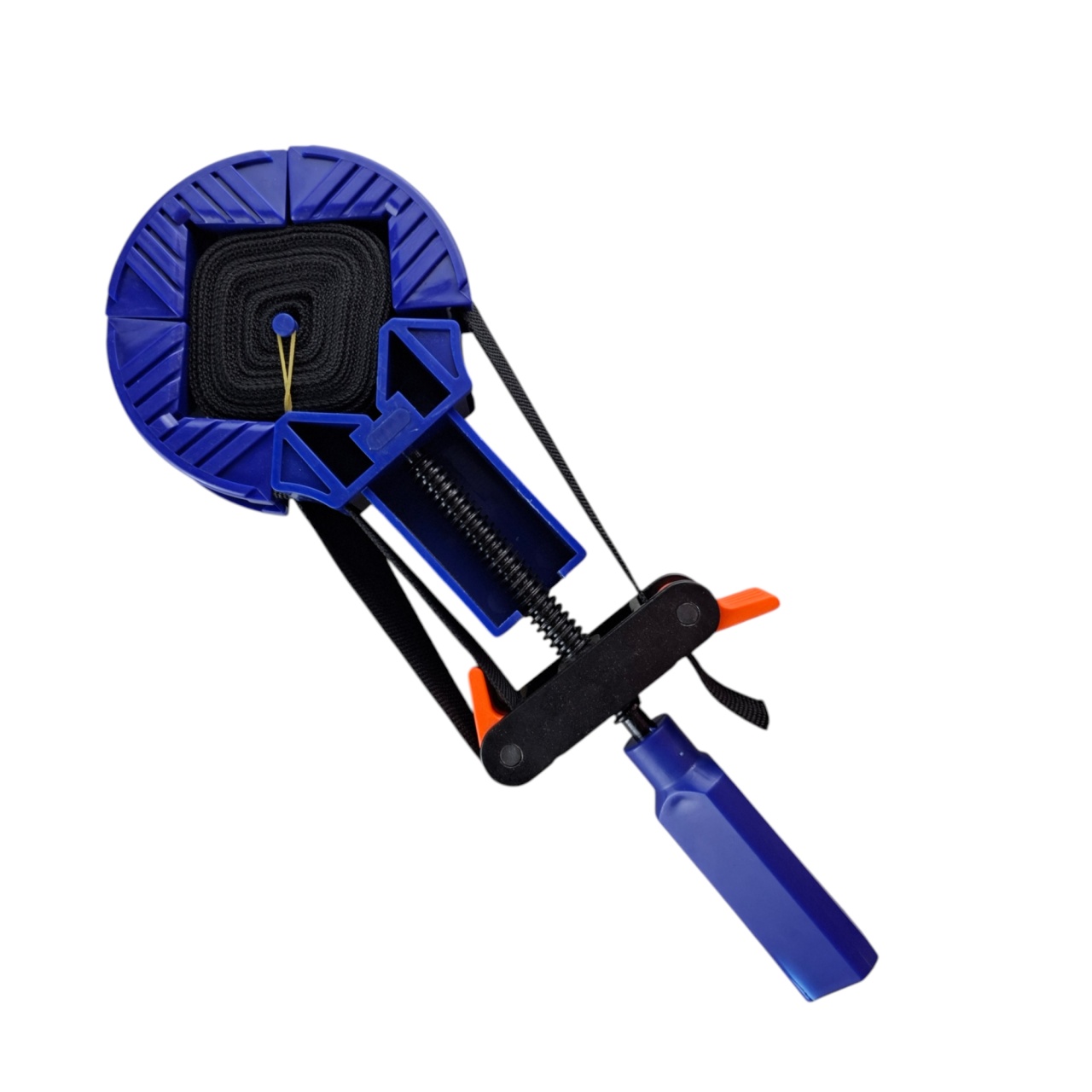 С помощью эргономичной пластиковой рукоятки струбцины Вы легко создаете необходимое давление, а прочный ремень шириной 25 мм равномерно распределяет усилие по всему периметру, предотвращая деформацию и повреждение хрупких поверхностей.