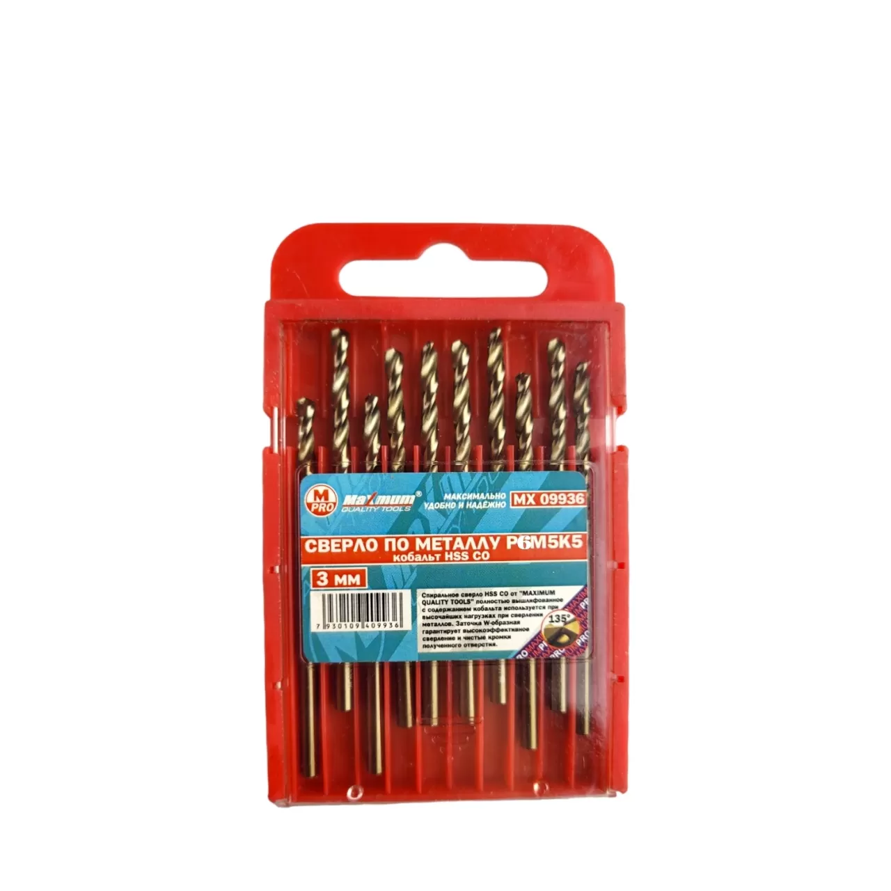 Профессиональные кобальтовые сверла 3 мм HSS для работ по металлу из стали P6M5K5 от бренда "MAXIMUM QUALITY TOOLS" имеют цилиндрический хвостовик и предназначены для дрели и шуруповерта. Общая длина: 60 мм. Сверло HSS СО 3 мм имеет удобную маркировку фактического диаметра. Предназначено для получения отверстий различного диаметра в листовых материалах без перестановки режущего инструмента. Сверло изготовлено из быстрорежущей стали, благодаря чему служит длительное время и работает с высокой скоростью.